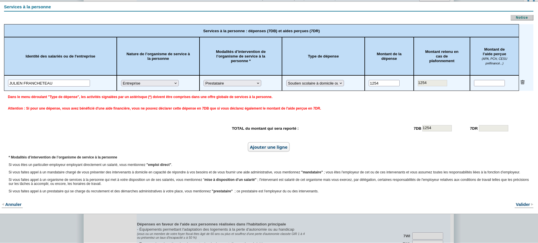 - si vous avez reçu des aides, notamment pour le cesu préfinancé par votre entreprise vous devez l’indiquer (→ montant de l’aide perçue)